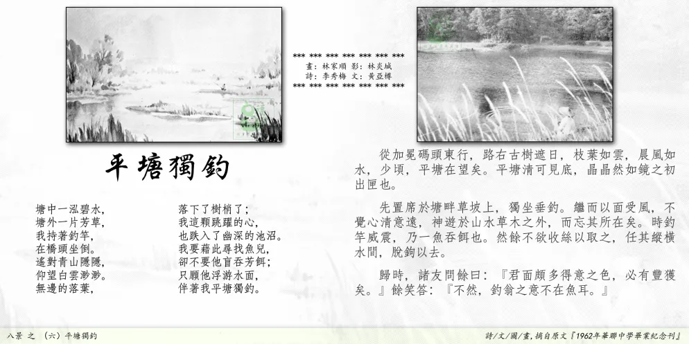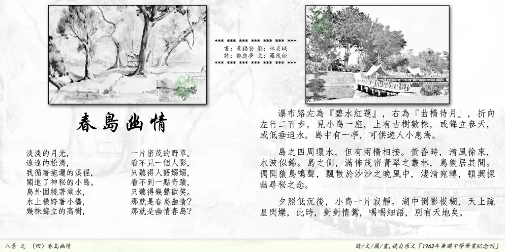 更为其分别创作了图画,照片,诗歌与文章,收录于《1962年华联中学毕业纪念刊》。